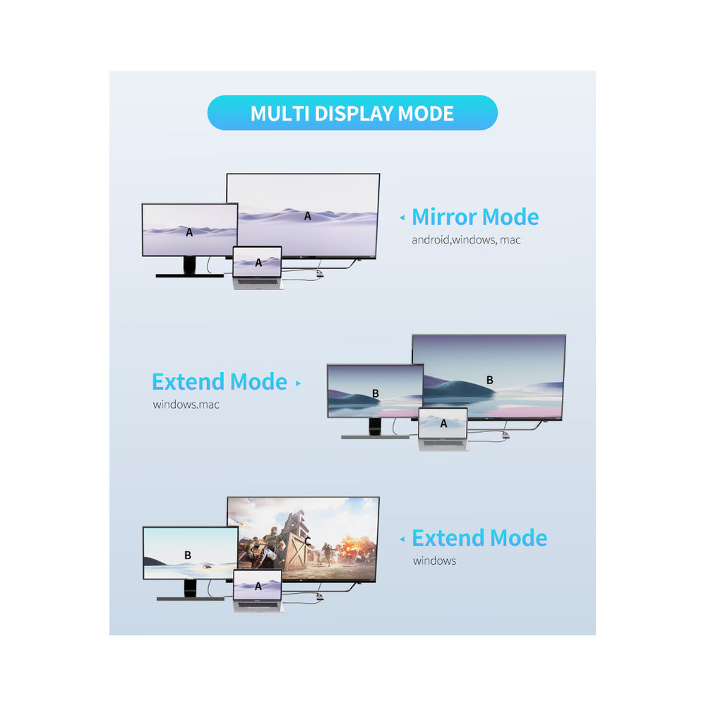 *Compatibilidad universal: Compatible con el sistema operativo Windows con puertos USB C, Mac OS. Asegúrese de que su puerto USB tipo C sea compatible con DISPLAYPORT ALTERNATE MODE.