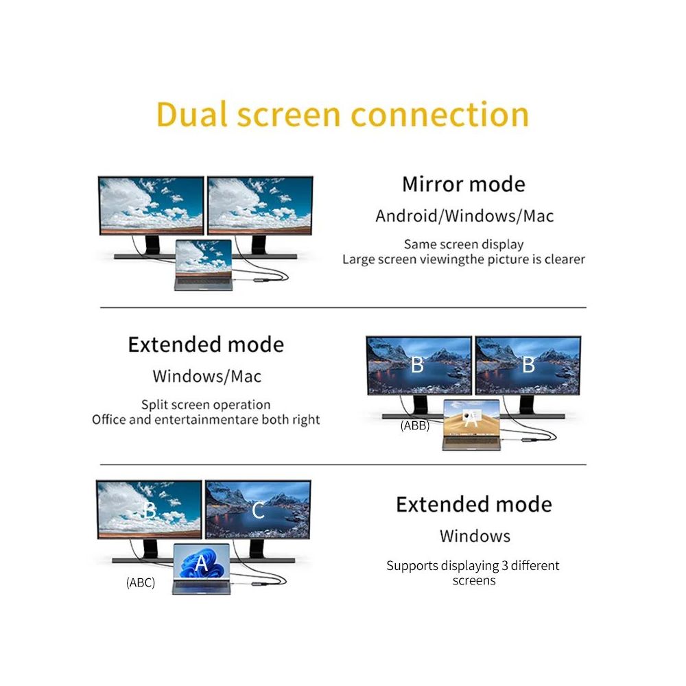 -1 adaptador DE USB C (ENTRADA) a 2 HDMI (SALIDAS)