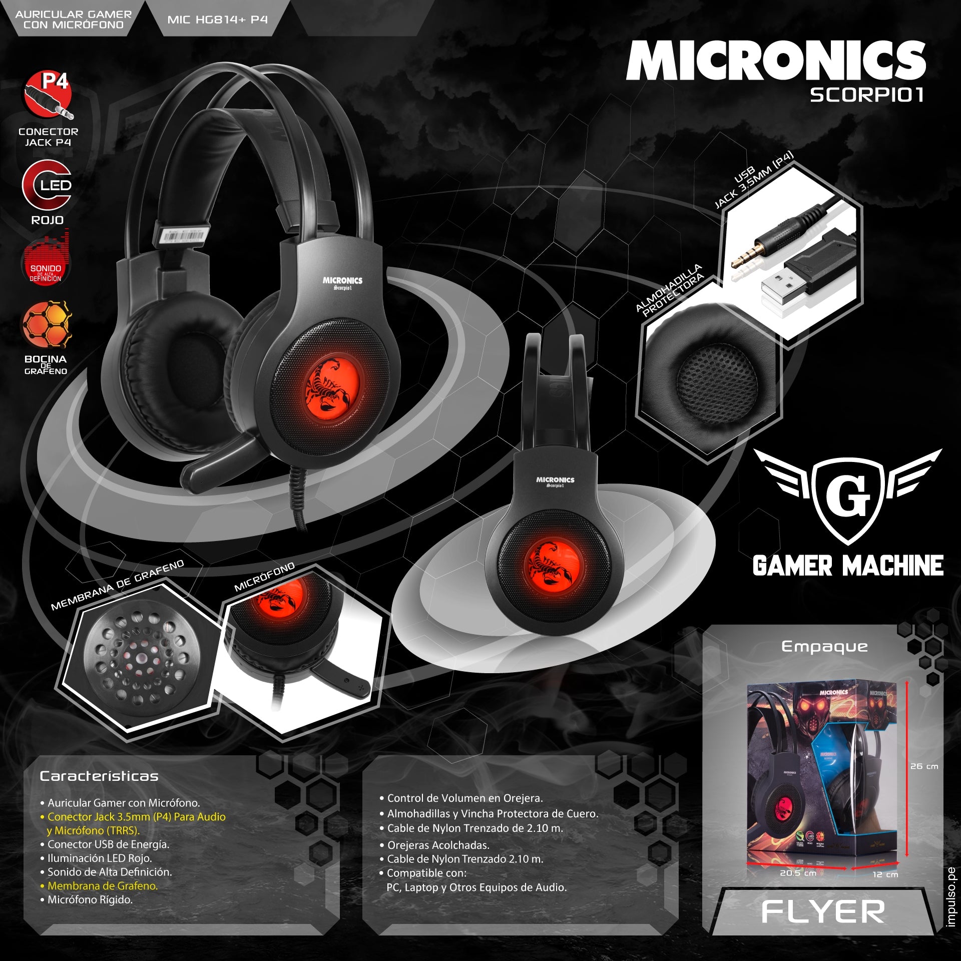 AUDIFONOS GAMING MICRONICS SCORPIO 1 - MIC HG814+P4 USB JACK 3.5
