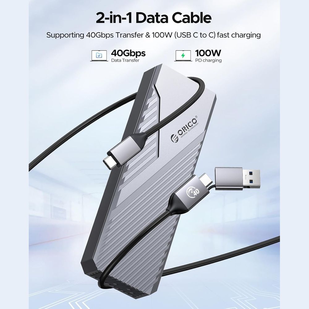 ** Cable 2 en 1 ** : Incluye un cable actualizado con dos salidas, USB-C a A (10Gbps) y USB-C a C (40Gbps), lo que permite conectar fácilmente computadoras, teléfonos y consolas con un solo cable.