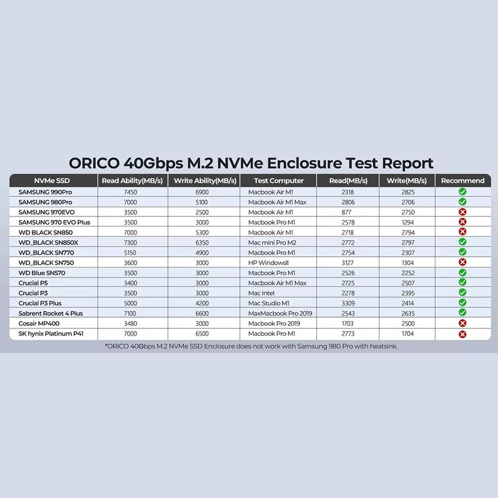 ** Compatibilidad con SSD ** : Soporta SSD NVMe M-Key 2230/2242/2260/2280 de hasta 8TB. No se recomienda usar con WD Black SN750, Samsung 970 EVO Plus ni Crucial P3. Plug-and-play, sin necesidad de controladores, para un funcionamiento sencillo y estable.