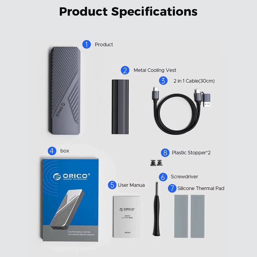 1 x ORICO CNM2-U4-GY-BP