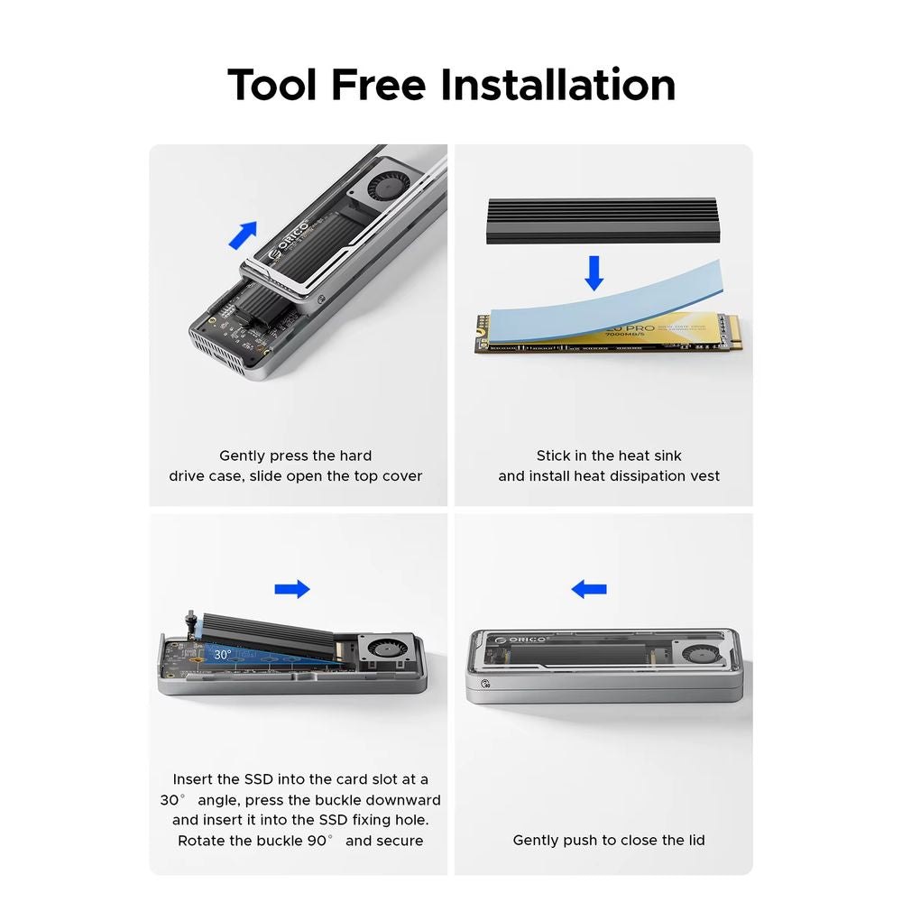ORICO Nuevo diseño Triple Mecanismo de Disipación de Calor 40Gbps recinto.Por carcasa de aleación de aluminio proporciona una excelente conductividad térmica, mientras que la almohadilla térmica de silicona absorbe y dispersa el calor generado por el disco duro. Previene eficazmente el sobrecalentamiento del disco duro durante un uso prolongado, garantizando la integridad de los datos y protegiendo el SSD.
