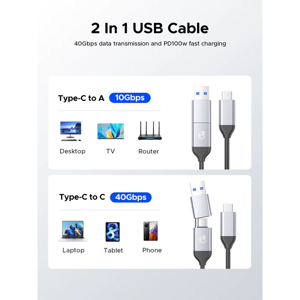 1 cable USB 2 en 1 Tipo C (con adaptador tipo A) de 30CM