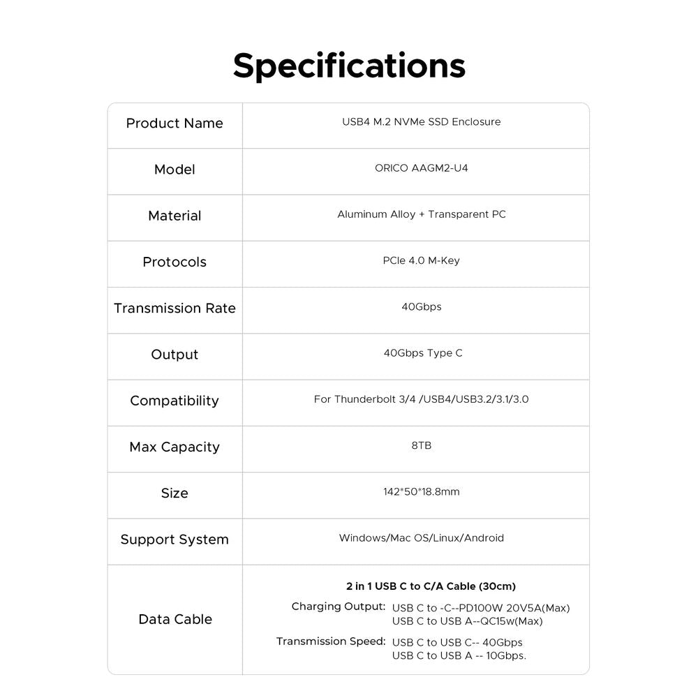 1 x ORICO USB 4 40Gbps NVME ENCLOSURE