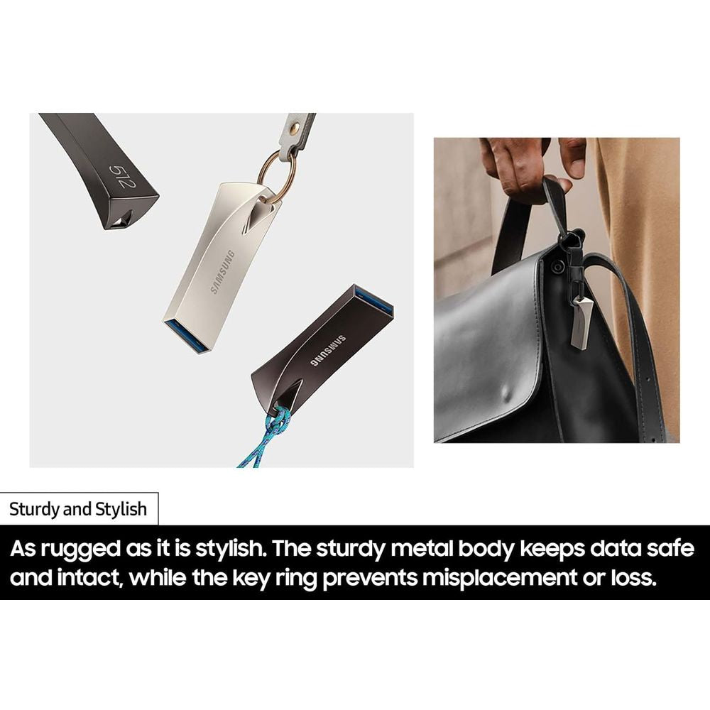 USB SAMSUNG 3.2 GEN1 512GB HASTA 400 mb/s BAR PLUS PLATEADO FINO (PN MUF-512BE3/AM)
